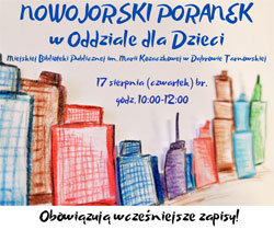 Oddział dla Dzieci Miejskiej Biblioteki Publicznej im. Marii Kozaczkowej w Dąbrowie Tarnowskiej zaprasza chętne dzieci w wieku od 7 lat wzwyż (rocznik 2016 włącznie) na „NOWOJORSKI PORANEK”.