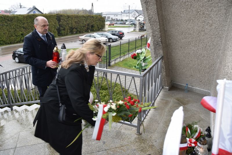 Na koniec przedstawiciele urzędów, szkół i instytucji złożyli wiązanki kwiatów i zapalili znicze pod Tablicą Katyńską.