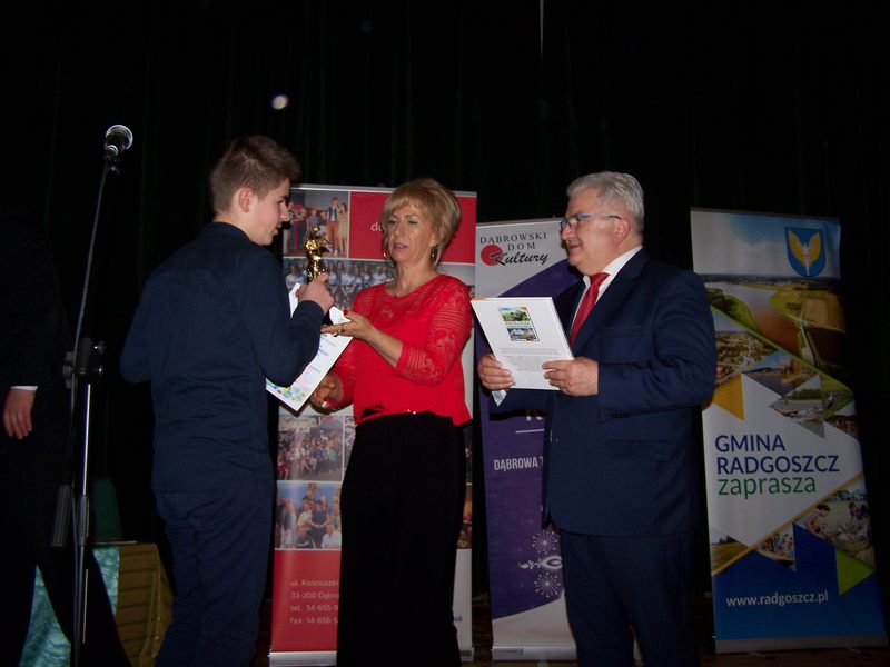 Nagrody i dyplomy wręczali: Krzysztof Kaczmarski – Burmistrz Dąbrowy Tarnowskiej, Renata Klimek – Kierownik Referatu Promocji UG w Radgoszczy, Łukasz Chmiel (Przewodniczący jury) i Paweł Chojnowski – Dyrektor DDK. Podczas obrad komisji oceniającej prezentacje czas umilił swoim krótkim koncertem kolęd we własnej aranżacji Adam Dudek. Wszyscy finaliści mogli skorzystać z poczęstunku przygotowanego przez organizatorów festiwalu.