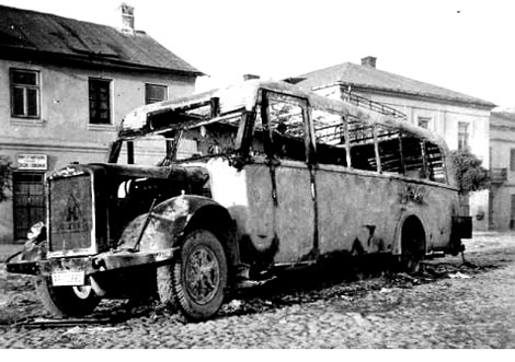 Spalony autobus niemieckiej orkiestry na rynku w Stopnicy [Dobr.].