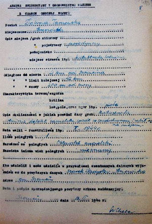 Arkusz ewidencyjny grobów wojennych na terenie gminy Szczucin [ANT]