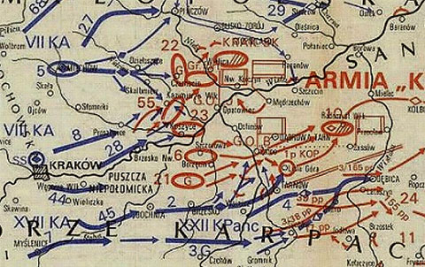 Sytuacja w dn. 7 IX wieczorem. Sztab Armii „Kraków” wycofuje się z Mędrzechowa [AKrak.]