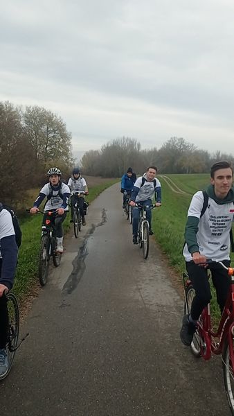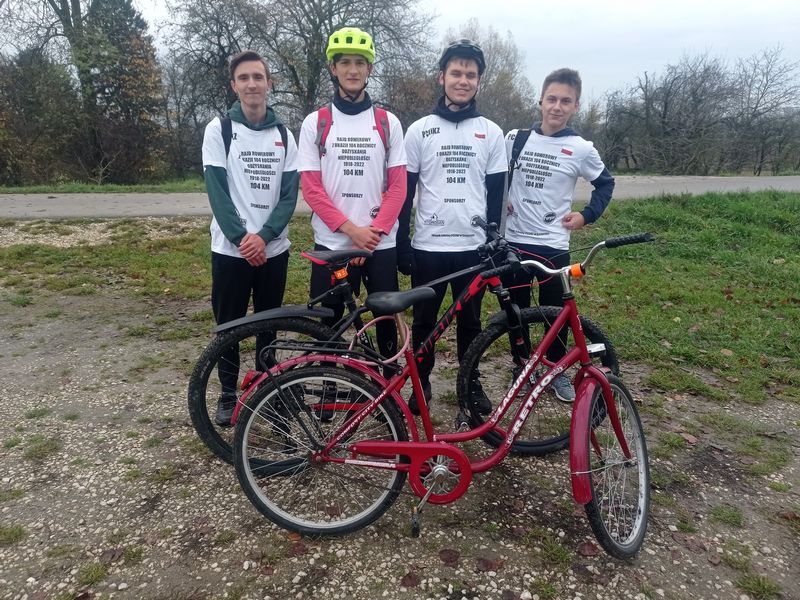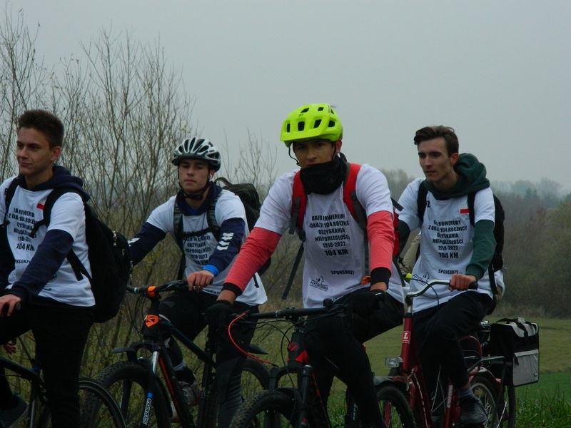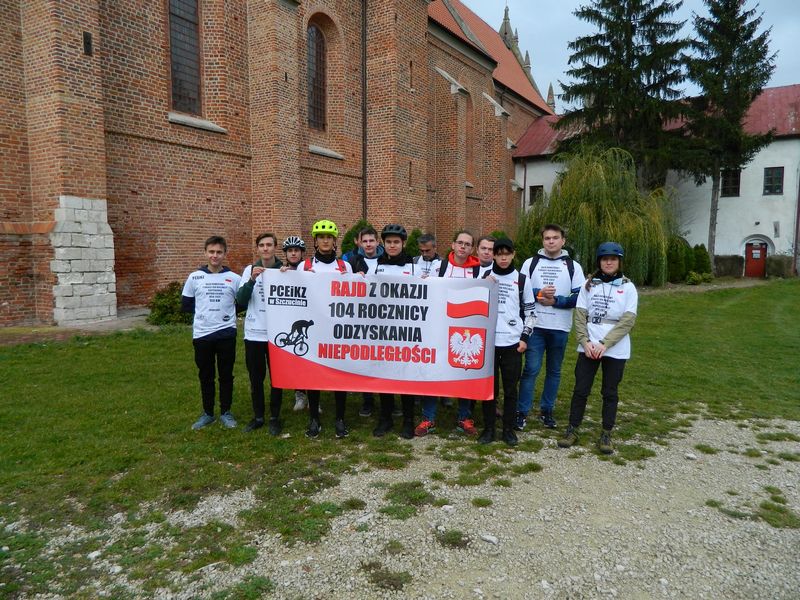 Rajd w 104 rocznice odzyskania niepodległości wyruszył spod szkoły. Odbywał się w malowniczym krajobrazie ścieżki rowerowej Powiśla Dąbrowskiego, a po przejechaniu mostu na Wiśle w Borusowej, kontynuowany był w równie urokliwym województwie świętokrzyskim. Uczestnicy w świetnym nastroju, z ogromnym zapałem i determinacją pokonywali wszystkie wytyczone odcinki trasy. Narzucając niesamowite tempo jazdy, nie zważali jak ogromny wysiłek czeka ich na podjazdach i wzniesieniach.