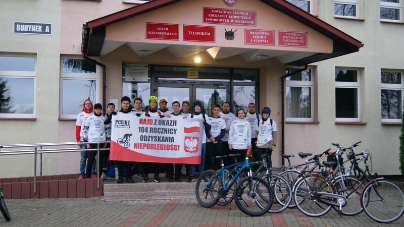 W Rajdzie Rowerowym z okazji 104 Rocznicy Odzyskania Niepodległości udział wzięli uczniowie, nauczyciele i pracownicy PCEIKZ w Szczucinie: