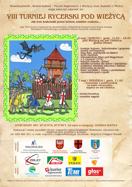 Stowarzyszenie „Wokół Kultury”, Poczet Bagiennych z Wieżycy oraz Joannici z Mielca mają zaszczyt zaprosić na VIII TURNIEJ RYCERSKI POD WIEŻYCĄ.