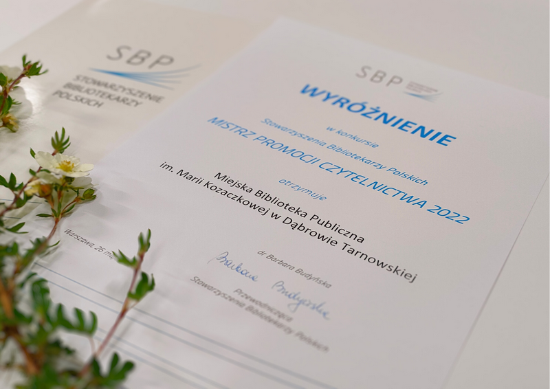 W gronie uhonorowanych instytucji znalazła się także Miejska Biblioteka Publiczna im. Marii Kozaczkowej, wyróżniona za całokształt działań promujących czytelnictwo, w różnych grupach wiekowych w ubiegłym roku. Doceniono autorski projekt „Dwie Marie – polskie wersy łączą pokolenia”, poszukujący wspólnych wartości w twórczości Marii Konopnickiej i poezji patronki dąbrowskiej biblioteki Marii Kozaczkowej oraz akcję literacką dla dzieci „O pisarzu w meloniku i z muszką” przeprowadzoną jesienią 2022 roku, w oparciu o twórczość Wojciecha Widłaka.