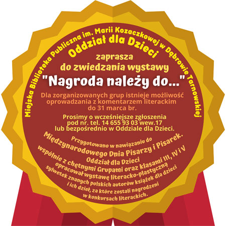 „Nagroda należy do…” – takim hasłem otwarto wystawę w Miejskiej Bibliotece Publicznej w Dąbrowie Tarnowskiej, która towarzyszy akcji literacko-plastycznej zorganizowanej przez Oddział dla Dzieci z okazji Międzynarodowego Dnia Pisarzy i Pisarek przypadającego na 3 marca.