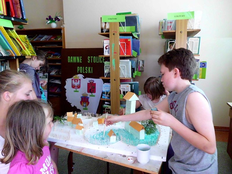Przez kolejne trzy dni młodzi czytelnicy Filii Bibliotecznej w Gruszowie Wielkim uczestniczyli w zajęciach literacko- plastycznych, których celem było poznawanie legend dotyczących dawnych stolic Polski: Gniezna, Krakowa i Warszawy.