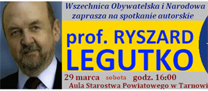 Początek spotkania autorskiego z profesorem Ryszardem Legutko 29 marca (sobota) o godz. 16:00 w auli Starostwa Powiatowego w Tarnowie, ul. Narutowicza 38.