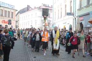 Pielgrzymka wyruszyła o 8.30. W tym roku, ze względu na remont ulicy Krakowskiej, trasa przemarszu przez miasto wiodła wyjątkowo ulicami: Mickiewicza, Al. Solidarności, Szujskiego i dalej jak w latach ubiegłych ulicą Mościckiego.