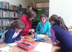 Nawiązując do pięknych tradycji wielkanocnych w okresie przedświątecznym użytkownicy biblioteki poznawali obrzędy i zwyczaje związane ze Świętami Wielkanocnymi, uczyli się wykonywać wiosenne kwiaty. Dzięki pomocy pani Barbary Kapuściak najmłodsi oraz nieco starsi czytelnicy mogli wykonać piękne pisanki oraz kartki świąteczne przy użyciu różnych metod i materiałów. Własne pomysły i zaangażowanie dzieci sprawiły, że powstały niezwykle oryginalne prace.