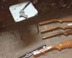 Natomiast do drugiego zdarzenia doszło na terenie Dąbrowy Tarnowskiej również około 13.00, gdy 30-latek dokonywał przeróbki broni palnej. Jak wynikało z relacji mężczyzny, broń przy której dokonywał przeróbek była umiejscowiona w imadle, z którego wypadła i wystrzeliła, raniąc mężczyznę w ramię. Pocisk o wymiarach 13 mm x 5 mm, który utkwił w prawym ramieniu 30-latka nie powodował zagrożenia dla jego życia i zdrowia. W miejscu zamieszkania 30-latka policjanci zabezpieczyli karabinek bez znaków identyfikacyjnych z gwintowaną lufą, wykonany własnoręcznie pistolet z tłumikiem bez cech identyfikacyjnych, 5 naboi o kalibrze 5 mm, 4 łuski po nabojach o kal. 5 mm, 3 drewniane kolby karabinowe oraz element mocowania lunety. Mężczyzna odpowie m.in. za nielegalne posiadanie broni i amunicji – grozi mu kara pozbawienia wolności do lat 8.