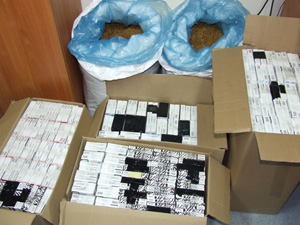 10 kwietnia br. w godzinach wieczornych na ul. Piłsudskiego w Dąbrowie Tarnowskiej policjanci Wydziału Ruchu Drogowego zatrzymali do kontroli samochód osobowy marki Toyota zarejestrowany na „krakowskich” numerach. Kierującym okazał się 59-letni mieszkaniec gminy Gdów, który nie posiadał uprawnień do kierowania pojazdami. Jak się okazało uprawnienia te zostały mu cofnięte z uwagi na przekroczony limit punktów karnych. W trakcie kontroli pojazdu policjanci ujawnili w bagażniku 1700 paczek papierosów zapakowanych w kartonowe pudełka. Paczki papierosów posiadały etykiety z napisami w języku rosyjskim. W samochodzie znajdowały się ponadto, dwa worki z zawartością tytoniu w postaci tzw. krajanki tytoniowej w ilości blisko 30 kg.