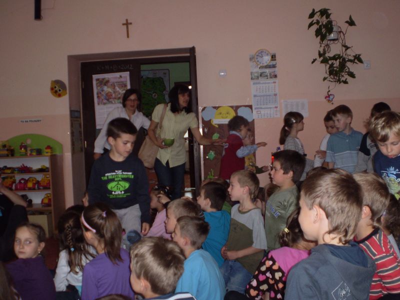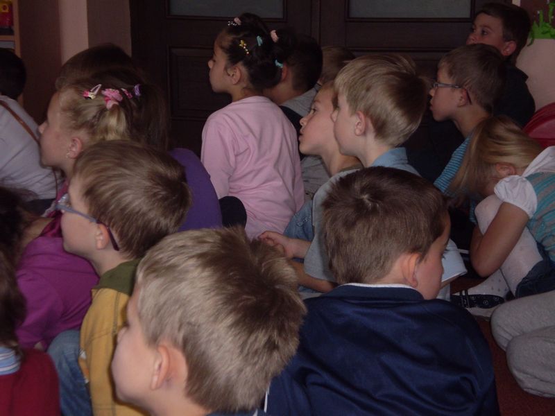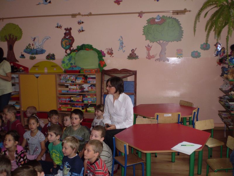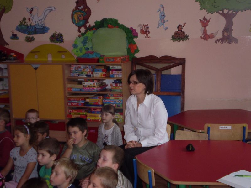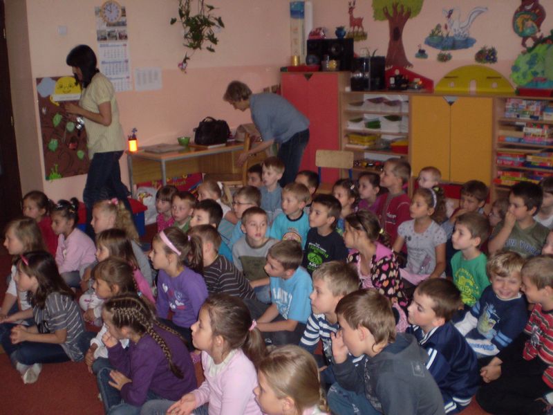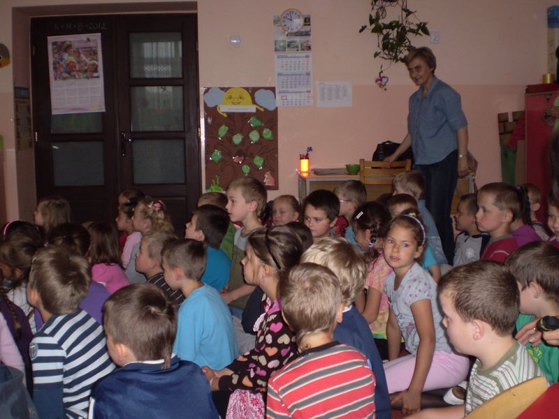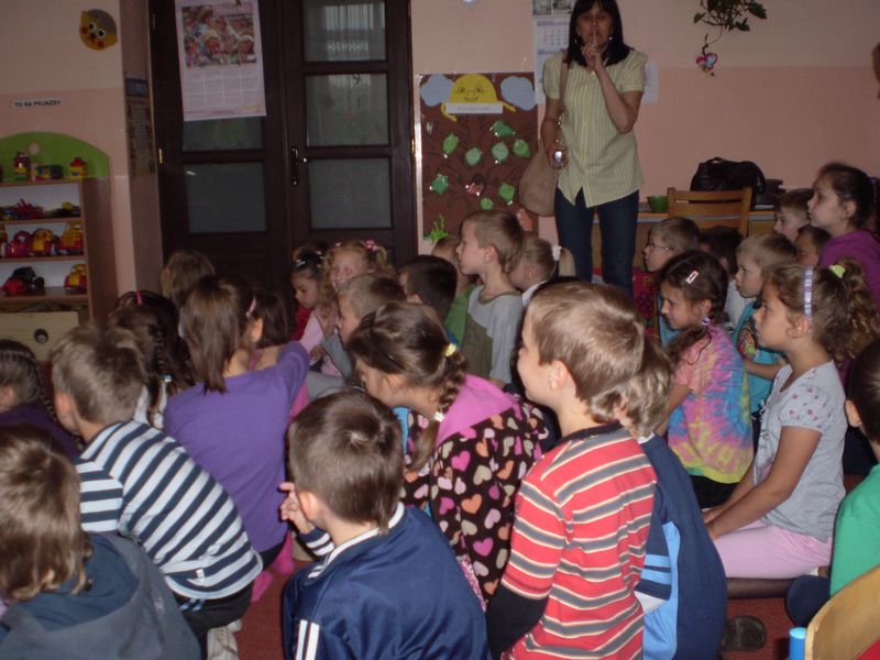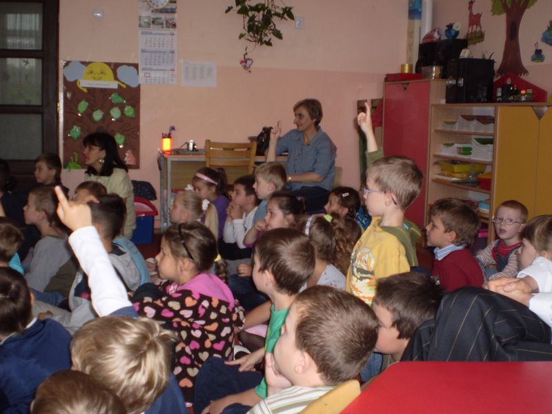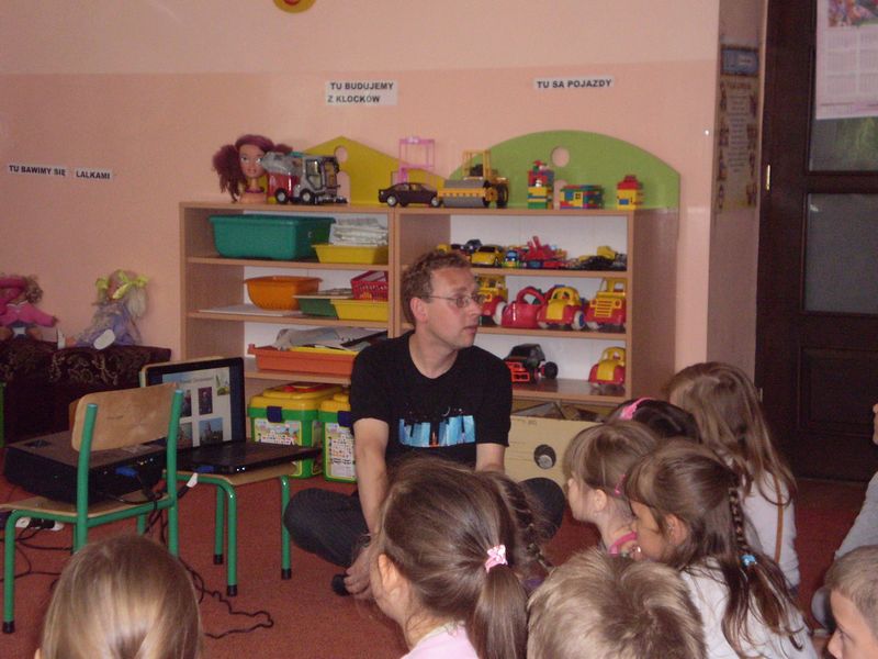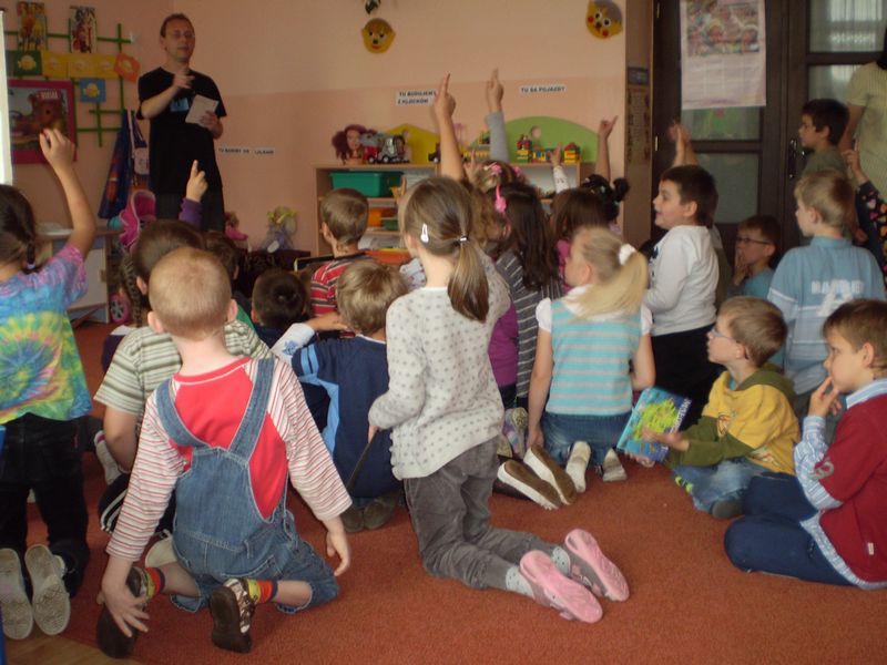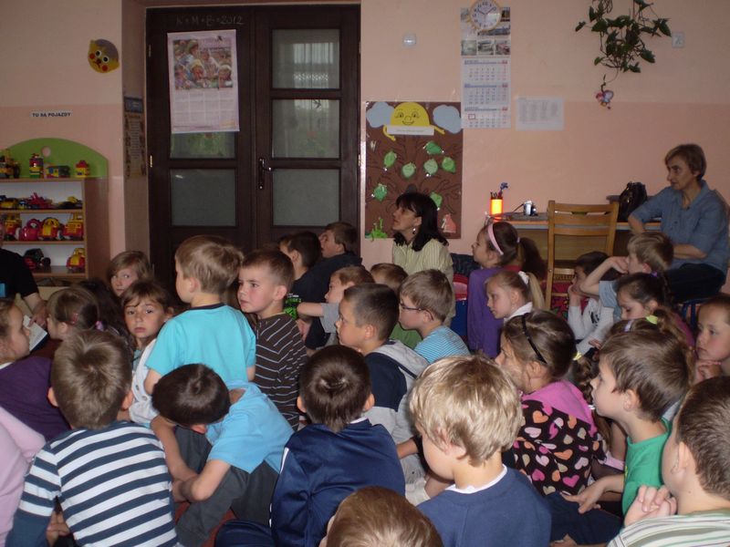 Po prezentacji dzieci odpowiadały na pytania dotyczące wędrówki Mirka Koralika. Za dobrą odpowiedź przedszkolaki otrzymały barwne widokówki z mapą Małopolski. Prowadzący zajęcia Szymon Bartosik pozostawił także w przedszkolu 20 bajek o Mirku Koraliku.