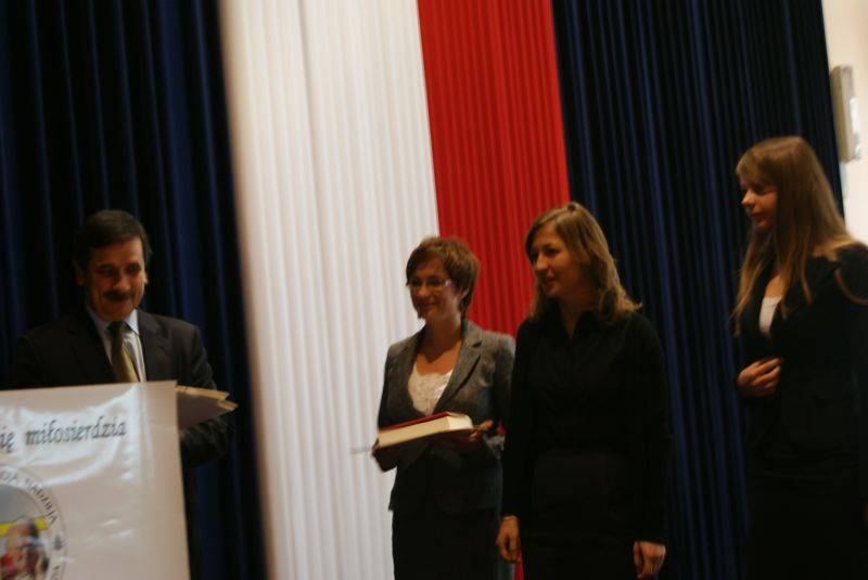 Pani dyrektor M. Chrabąszcz odebrała  z rąk wicemarszałka Województwa Małopolskiego Romana Ciepieli oraz pani Dyrektor Delegatury Małopolskiego Kuratorium Oświaty w Krakowie  Urszuli Blicharz list gratulacyjny i podziękowania za pracę wychowawczą szkoły.