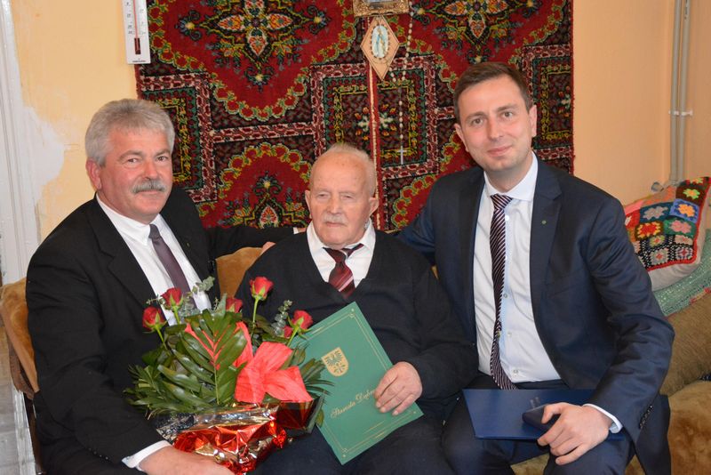 Z okolicznościową wizytą u Dostojnego Jubilata gościł Krzysztof Kaczmarski Burmistrz Dąbrowy Tarnowskiej, Krzysztof Orwat Kierownik Referatu Promocji, Kultury i Informatyzacji Urzędu Miejskiego oraz Kierownik Urzędu Stanu Cywilnego Magdalena Pinas. Na ręce Jubilata Burmistrz przekazał okolicznościowy list gratulacyjny, kwiaty oraz drobny upominek, a także złożył Jubilatowi w imieniu własnym oraz wszystkich mieszkańców gminy serdeczne gratulacje oraz najlepsze życzenia.