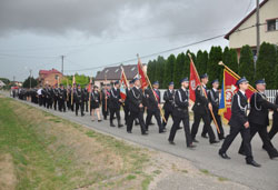 Dowódca złożył raport Prezesowi Zarządu Oddziału Powiatowego ZOSP RP druhowi Ryszardowi Pikulowi o gotowości do rozpoczęcia uroczystości. Po czym nastąpił przegląd pododdziałów oraz uroczyste podniesienie flagi państwowej na maszt. Orkiestra odegrała Hymn Państwowy.