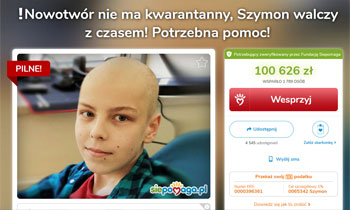 Można także wspierać Szymona dzięki wpłatom na www.siepomaga.pl https://www.siepomaga.pl/szymon-kolano