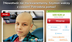 Od ponad roku czternastoletni Szymon Kolano z Olesna walczy z rakiem. Przeszedł już 7 cyklów chemii i jedną operację oraz niedawno radioterapię. Jednak to nie koniec walki o jego zdrowie. Dalsze etapy leczenia, kolejne zabiegi i rehabilitacja wymagają sporych nakładów finansowych.