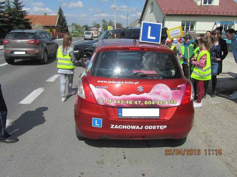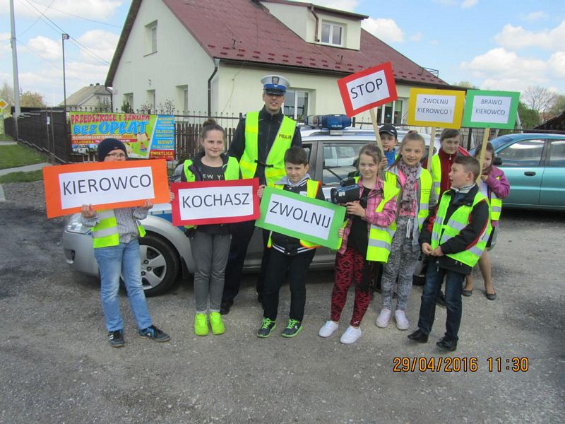29 kwietnia br. w miejscowości Żelazówka na drodze krajowej nr 73 młodzież tutejszej Szkoły Podstawowej wraz z policjantami dąbrowskiej drogówki uczestniczyła w akcji ,,Kierowco, kochasz? Zwolnij!”.