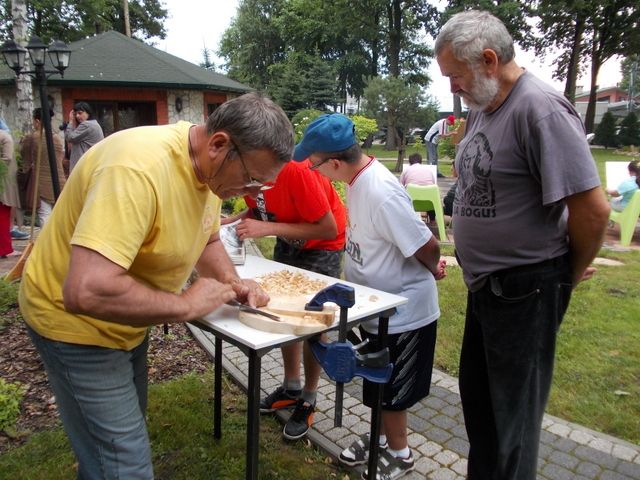 Pomysł, by na terenie rekreacyjnym przy firmie integrować tych, którzy działają w różnych dziedzinach sztuki, kiełkował już od kilku lat. A ponieważ WTZ w Tarnowie są ośrodkiem, w którym niepełnosprawni tworzą różnego typu przedmioty dekoracyjne nawiązana została współpraca. Tak więc jeden dzień międzynarodowego, polsko – białoruskiego pleneru, który od kilku lat odbywa się w Dąbrowie Tarnowskiej w ramach święta miasta, uczestniczący w nim artyści spędzili razem z grupą niepełnosprawnych – mówi Jarosław Gęza.