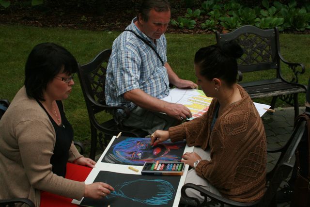 Artyści nie tylko przygotowują nowe prace, ale również włączyli się do współpracy z osobami niepełnosprawnymi na zaproszenie Jarosława Gęzy, właściciela firmy Akcent Studio. W czwartek podopieczni Warsztatów Terapii Zajęciowej z Tarnowa uczestniczyli w zajęciach przygotowanych przez artystów. Malarze i rzeźbiarze spotkali się z wychowankami WTZ na terenach rekreacyjnych firmy reklamowej. Ponad dwudziestu podopiecznych tarnowskich WTZ miało okazję obserwować artystów przy pracy i pod ich okiem przygotować własne rysunki.