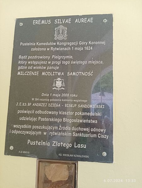 Kolejnym punktem programu były Rytwiany. To Pokamedulski Zespół Klasztorny zwany także „Pustelnią Złotego Lasu”. Centralne miejsce w pustelni stanowi kościół Zwiastowania NMP, będący wspaniałą perłą architektury barokowej. Z ust księdza – przewodnika dowiedzieliśmy się o historii pustelni – jego założycielach i zacnych rodach wspierających klasztor, wśród których byli Tenczyńscy, Lubomirscy, Sieniawscy, Czartoryscy, Potoccy i Radziwiłłowie. Ciekawostką i atrakcją turystyczną w obrębie pustelni jest filmowy refektarz nawiązujący do kręconego tu kiedyś serialu „Czarne Chmury”.