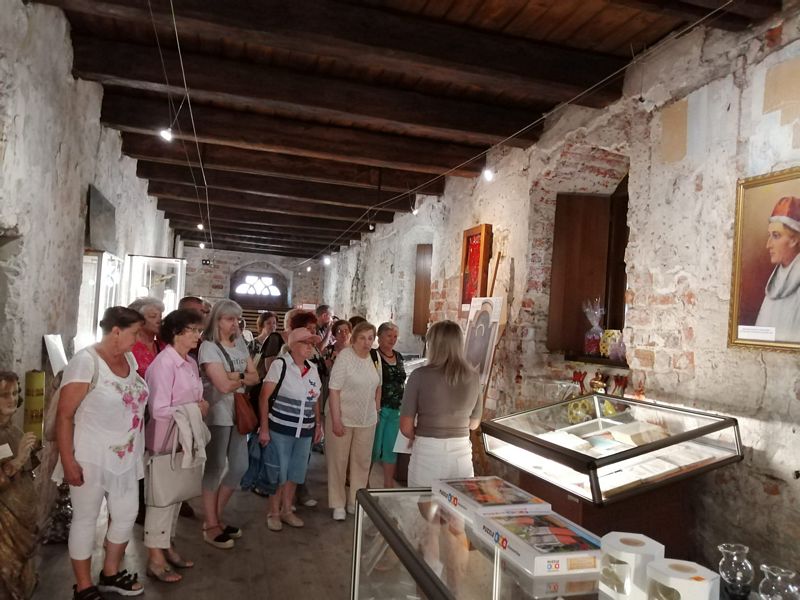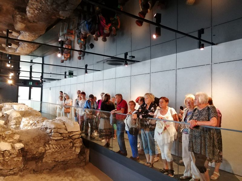 Pierwszym punktem programu była – położona w nadnidziańskiej dolinie – Wiślica, gdzie seniorzy zwiedzili Muzeum Archeologiczne, w którym główną ekspozycję tworzą cenne pozostałości architektoniczne średniowiecznych zabytków, Bazylikę Narodzenia NMP ufundowaną przez Kazimierza Wielkiego i Dom Długosza.