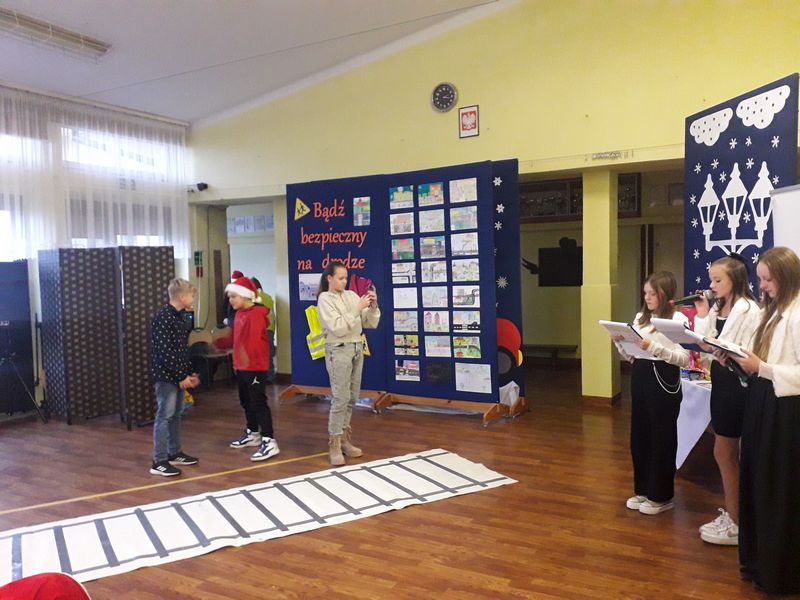 Podczas podsumowania projektu wręczono nagrody dla laureatów konkursów tematycznych. Uczniowie, którzy wykazali się pomysłowością i wiedzą, otrzymali dyplomy oraz upominki w uznaniu za swoje zaangażowanie. Finał wydarzenia należał do uczniów klasy drugiej, którzy przygotowali niezwykle barwny występ. W rytmie radosnej piosenki o zasadach bezpieczeństwa rozbudzili entuzjazm publiczności, po czym zaprezentowali efektowny pokaz mody odblaskowej. Ten kreatywny akcent przypomniał, jak ważne jest bycie widocznym na drodze, zwłaszcza po zmroku.