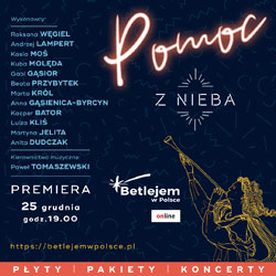 Od sześciu lat widzowie w całej Polsce mieli okazję świętować Boże Narodzenie, uczestnicząc w widowiskach Betlejem w Polsce. Ze względu na bieżącą sytuację, organizator trasy zaprasza wszystkich do wirtualnej przestrzeni na koncert „Pomoc z nieba”. Miejsca są tu dostępne bez limitu. Z każdego z nich scena stanie się tak samo dobrze widoczna, a koncert będzie można obejrzeć jeszcze wiele dni po premierze. Wierzymy, że z każdym kolejnym dniem świątecznego czasu liczba odbiorców Betlejem 2020/2021 będzie rosła.