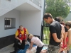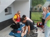 Tym razem instruktaż oprócz resuscytacji krążeniowo-oddechowej dorosłego, dziecka i niemowlęcia oraz zapoznania z automatycznym defibrylatorem obejmował również ugaszenie pożaru. Andrzej Dziedzic ekspert ds. bhp certyfikowany przez CIOP-PIB objaśniał zainteresowanym jak postępować z poszkodowanym na miejscu wypadku i jak udzielić pierwszej pomocy oraz jak ugasić ewentualny pożar. Do tego celu wykorzystano mobilny symulator pożarów, który pozwala na uzyskanie pożarów grupy A. Przed udostępnieniem symulatora uczestnikom akcji sprawdzono jego działanie tak by nie zagrażało to ich bezpieczeństwu. Dokonali tego przedstawiciele Biura D-U BHP, oraz policjanci którzy przy okazji akcji odświeżyli sobie podstawowe umiejętności z pierwszej pomocy oraz ppoż..