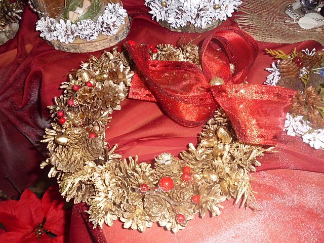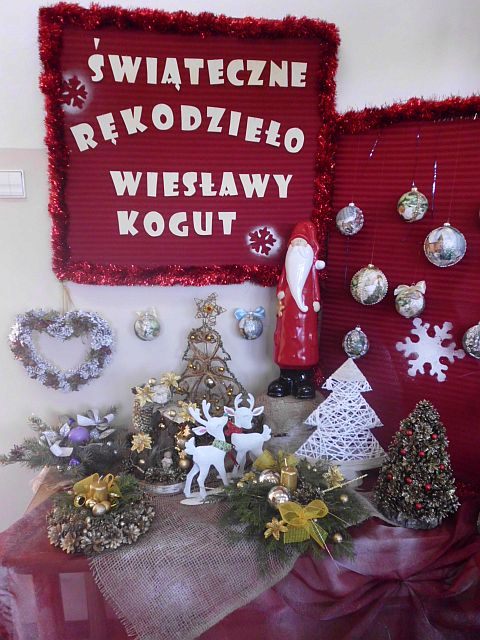 Wśród nich na wystawie znajdują się wykonane z pozoru z prostych materiałów, a zarazem przecudnej urody pomysłowe stroiki, szyszkowe choinki, fantazyjnie zdobione bombki oraz różnego rodzaju zawieszki, które mogą przyozdobić świąteczny stół oraz wzbogacić wystrój naszych domów. Oprócz tego można podziwiać ozdoby wykonane techniką decoupage oraz klasyczne wianuszki w najrozmaitszych wariantach. Wszystkie ozdoby są bardzo oryginalne, z tego też względu mogą być podpowiedzią na świąteczny prezent.