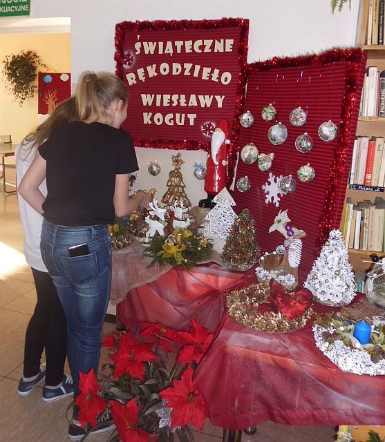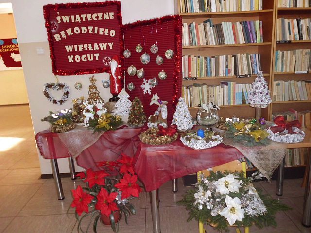 Choć do Świąt Bożego Narodzenia pozostało już kilka dni, warto pomyśleć o świątecznych ozdobach. Bożonarodzeniowy klimat można już poczuć w Filii Bibliotecznej w Szarwarku oglądając wystawę dekoracji i ozdób świątecznych zatytułowaną ŚWIĄTECZNE RĘKODZIEŁO WIESŁAWY KOGUT.