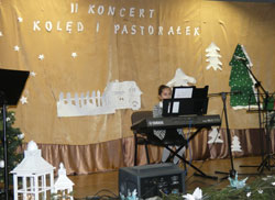 Publiczność wysłuchała bożonarodzeniowych utworów w wykonaniu dzieci oraz młodzieży uczęszczających na lekcje gry na instrumentach prowadzonych przez pana Krzysztofa Romana w GBP w Bolesławiu.