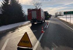 20 stycznia w godzinach przedpołudniowych strażacy z OSP Szczucin zostali zadysponowani do wypadku drogowego w miejscowości Skrzynka na DK nr 73. Po przyjeździe na miejsce okazało się, że doszło do najechania przez samochód dostawczy na tył naczepy samochodu ciężarowego.