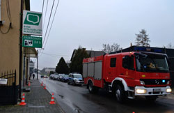 Po przyjeździe na miejsce nasze działania polegały na zabezpieczeniu miejsca i wyznaczenia strefy bezpiecznej, natomiast dalsze działania prowadziła Policja. Po przeszukaniu przez Policję całego budynku banku nie znaleziono podłożonego ładunku wybuchowego, a zdarzenie zostało zakwalifikowane jako alarm fałszywy.