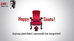 W sobotę 28.11 na seansie „SPECTRE” o godz.20:15 wznawiamy akcję promocyjną „Kinads” i Kina „Sokół” pn. „HAPPY SEATS”. Po otworzeniu fotela prosimy sprawdzić, czy na siedzisku nie ma kartki z napisem „Happy Seats”.