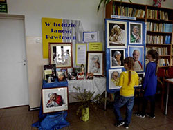 W Oddziale dla Dzieci Miejskiej Biblioteki Publicznej im. Marii Kozaczkowej w Dąbrowie Tarnowskiej podziwiać można plastyczne wizerunki „Świętego Jana Pawła II – pielgrzyma świata”.