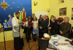 Mimo braku śniegu, w nastój wigilijno-bożonarodzeniowy wprowadzili zebranych, uczniowie Publicznej Szkoły Podstawowej nr 2 w Dąbrowie Tarnowskiej, którzy pod kierunkiem nauczycieli Anny Piotrowskiej i ks. Jacka Janiczka przygotowali i przedstawili montaż słowno – muzyczny pt. „Ktoś puka do drzwi naszych…”.