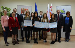 Siedmiu uczniów z ZSP nr 2 w Dąbrowie Tarnowskiej oraz ZSP w Brniu odebrało z rąk starosty Tadeusza Kwiatkowskiego stypendium i symboliczne czeki na kwotę 6 tys. zł.