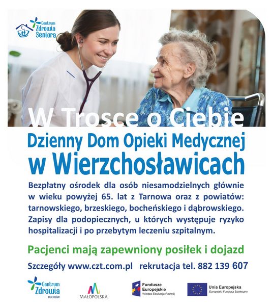 Dzienny Dom Opieki Medycznej w Centrum Zdrowia Seniora w Wierzchosławicach wraca do realizacji standardowych świadczeń. Placówka kompletuje pacjentów. O przyjęcie mogą się ubiegać mieszkańcy Tarnowa oraz powiatów: tarnowskiego, dąbrowskiego, brzeskiego i bocheńskiego, u których występuje ryzyko hospitalizacji.