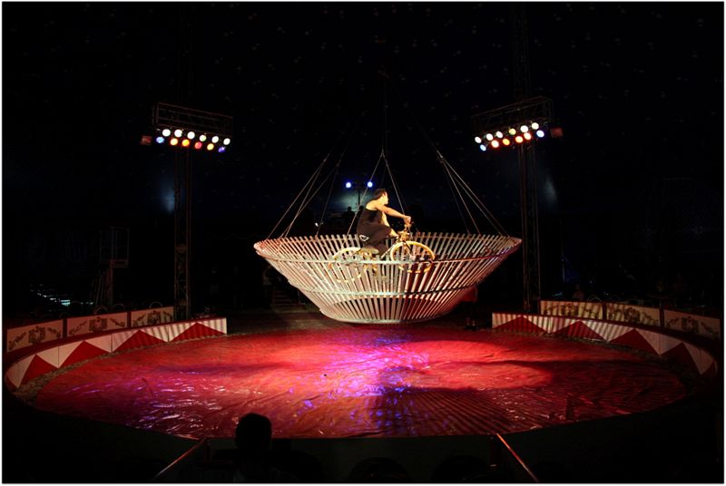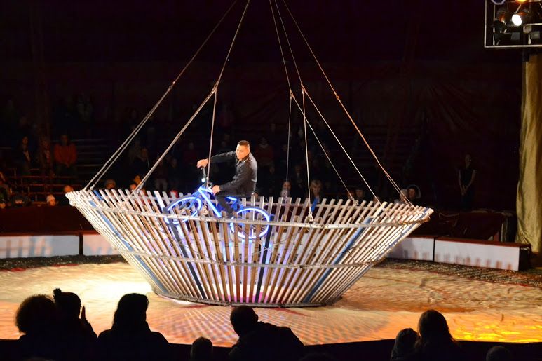„Podniebny rower”-Nietypowy pokaz jazdy na rowerze w podniebnej przestrzeni.