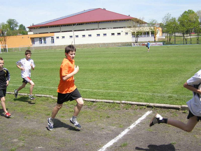 W ramach realizacji kalendarza współzawodnictwa sportowego szkół przeprowadzone zostały 18 maja br . Mistrzostwa Powiatu szkół podstawowych czwórboju lekkoatletycznym.