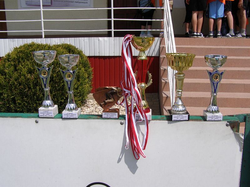 Zwycięzcy i najlepsi zawodnicy otrzymali dyplomy, medale, puchary, statuetki, które wręczali w imieniu Starosty Dąbrowskiego Tadeusza Kwiatkowskiego nauczyciele wychowania fizycznego.