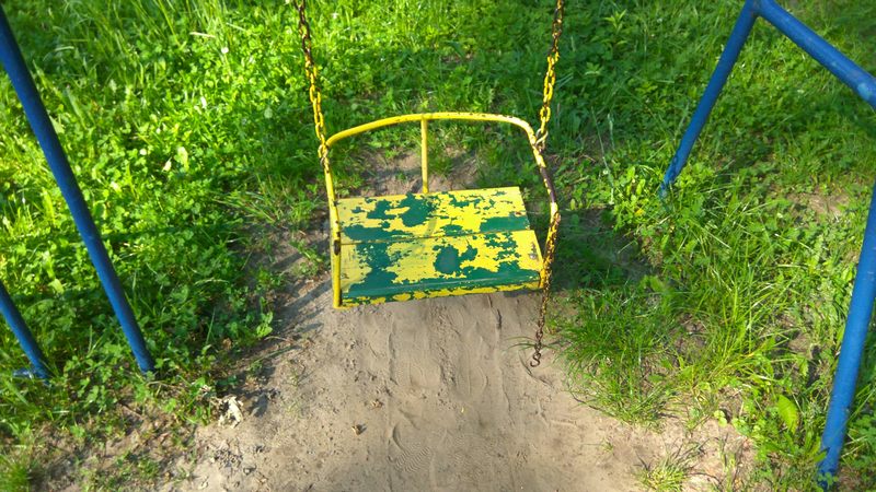 2) zdj. 4-5 – huśtawka waga – piękne uszkodzenie widoczne na zdjęciach, o oblazłej farbie nawet nie wspomnę, o tym później.