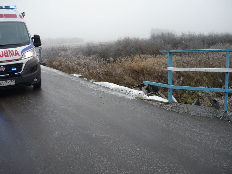 Do groźnego wypadku doszło w miejscowości Dąbrówka Gorzycka w powiecie dąbrowskim. Kierujący pojazdem wypadł z mostu i dachował w okolicy rzeki Żabnica.