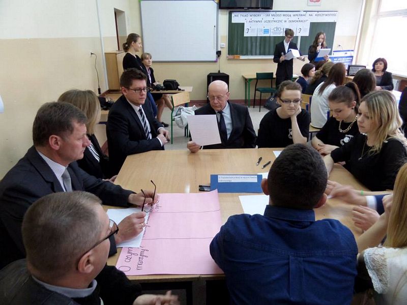 W dyskusji uczestniczyli wicestarosta Robert Pantera, burmistrz Stanisław Początek – jako eksperci, przedstawiciele samorządów lokalnych, Powiatowego Urzędu Pracy, Zarządu Drogowego, rodzice, nauczyciele jako doradcy oraz uczniowie Zespołu Szkół Ponadgimnazjalnych nr 1 i Zespołu Szkół Ponadgimnazjalnych nr 2.