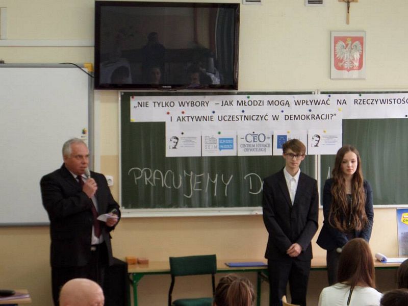 Debata przebiegała pod hasłem „Nie tylko wybory- jak młodzi ludzie mogą wpływać na rzeczywistość i aktywnie uczestniczyć w demokracji?”, a przygotowali ją Paulina Zachara i Bartłomiej Biel z pomocą nauczycieli.