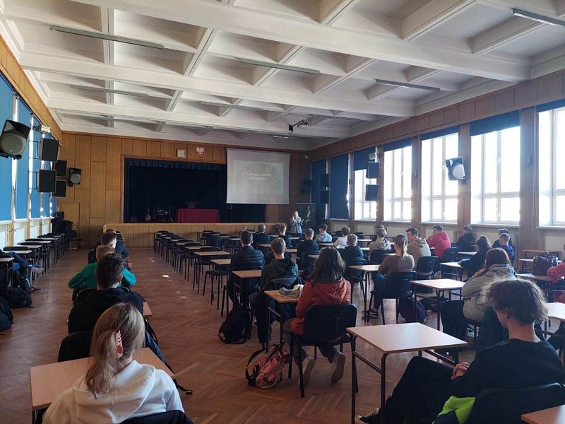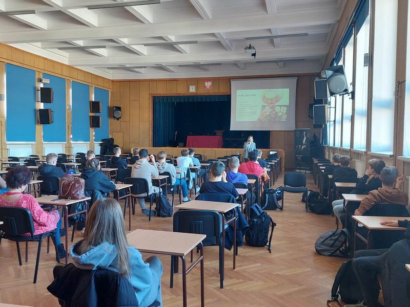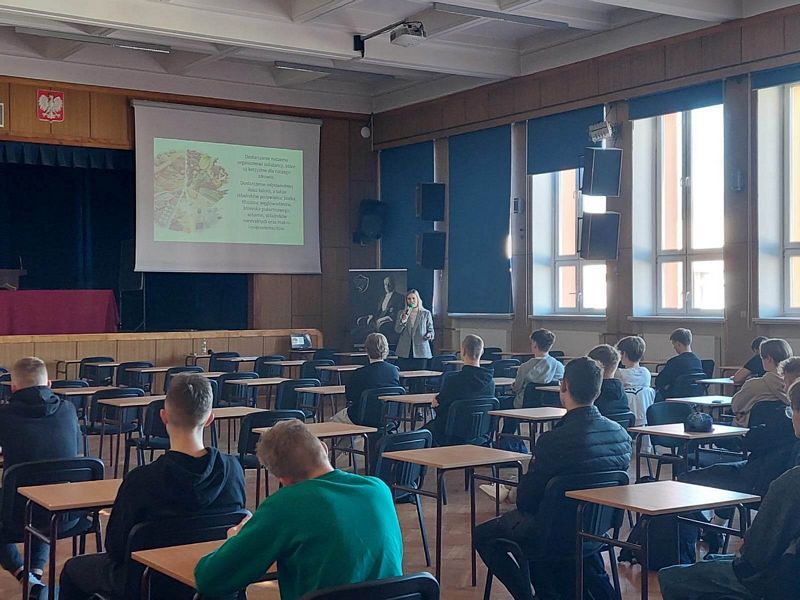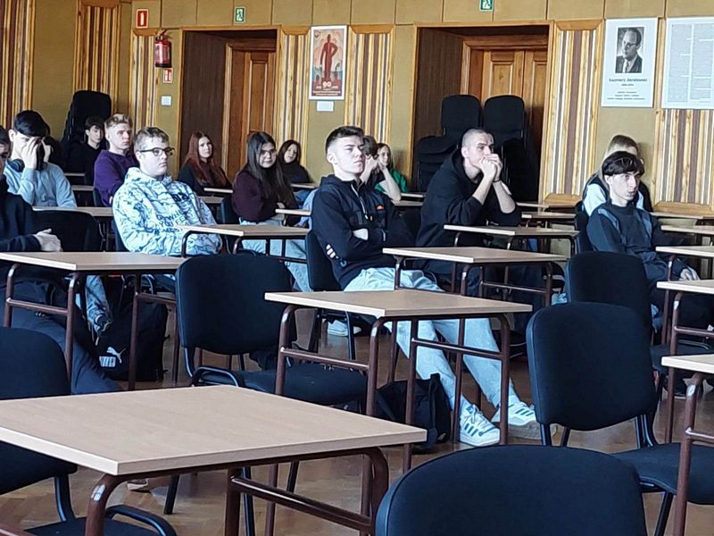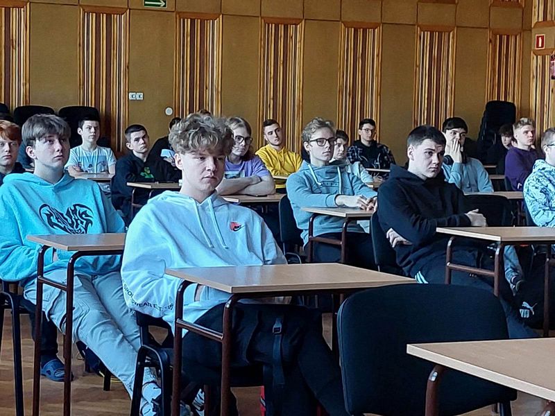 Młodzież bierze udział w pogadankach edukacyjnych.