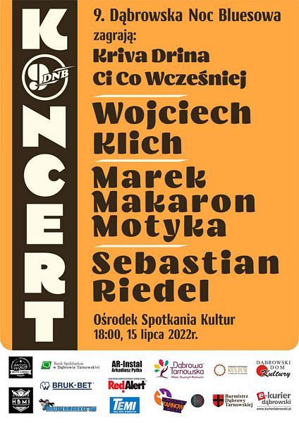 Wystąpią: „Ci Co Wcześniej” (muzycy zakorzenieni w Dąbrowie i Tarnowie), znany nie tylko w regionie Wojciech Klich, Marek “Makaron” Motyka (śląski blues), Sebastian Riedel (usłyszymy m.in. kilka przebojów legendarnej grupy „Dżem”) i jako kontrapunkt bluesa – folkowa grupa „Kriva Drina” (muzyka bałkańska).